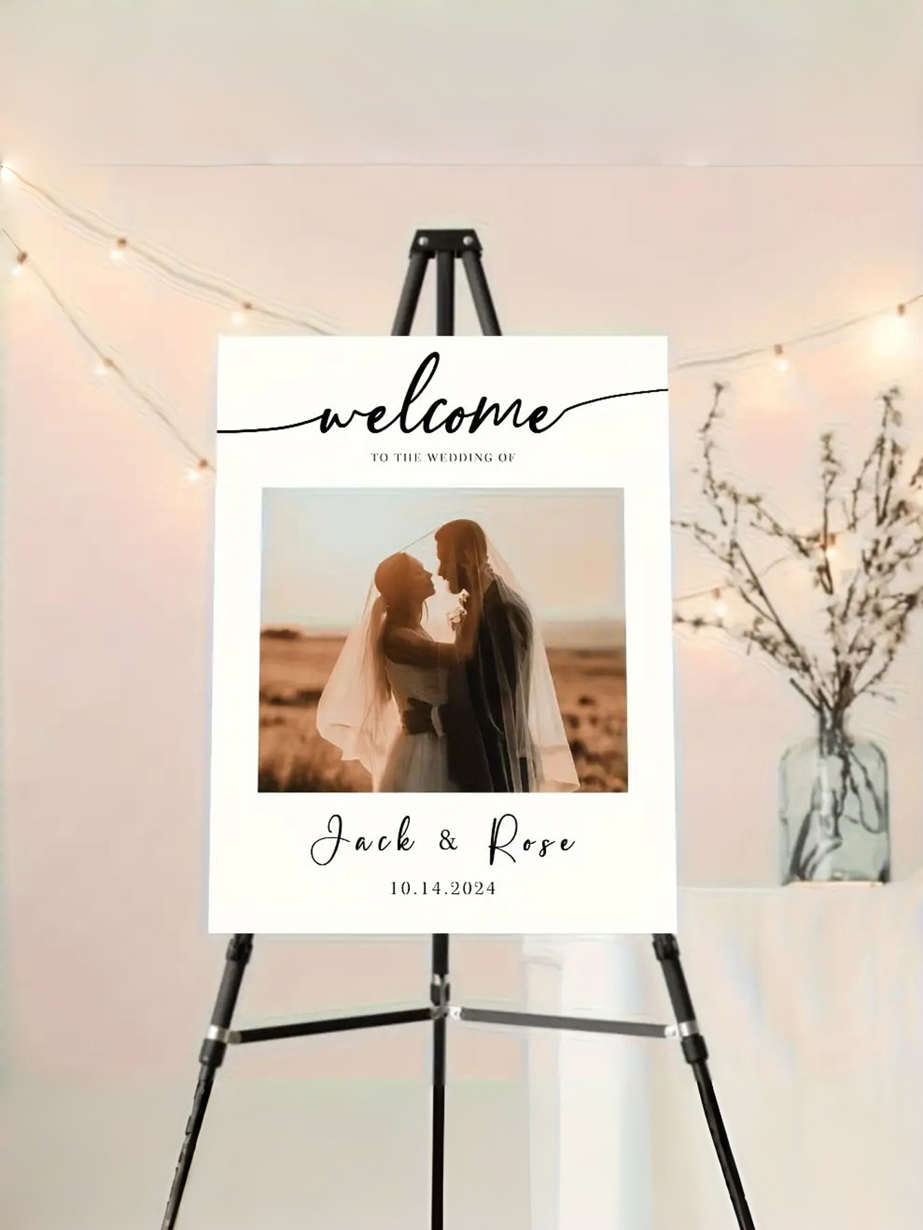 Made from high-quality acrylic, this decorative sign features your favorite photo, names, and wedding date, creating a warm and elegant entrance display. The sleek, glossy finish enhances your image while giving it a professional touch that fits perfectly with any wedding theme — rustic, boho, classic, or modern.